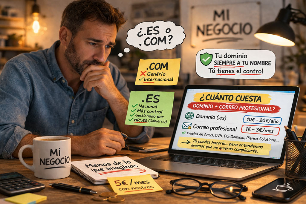 Una de las primeras preguntas que se hace cualquier pequeño negocio cuando piensa en internet es muy clara: ¿cuánto cuesta realmente tener un dominio y un correo profesional?